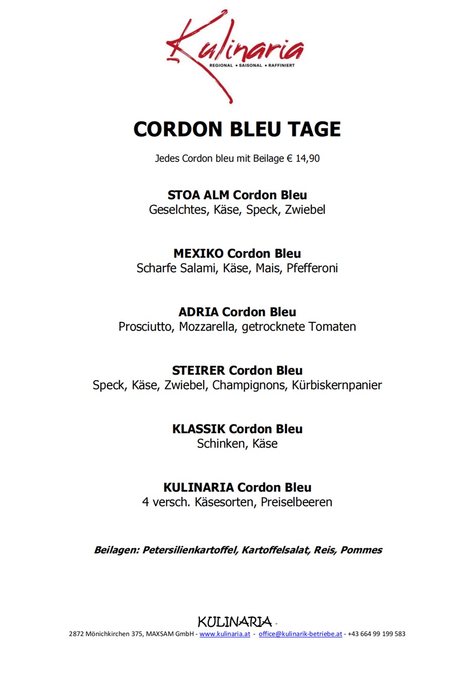 Gasthäuser & Lokale gibt es viele, doch was zeichnet die Speisen im Restaurant Kulinaria aus? Wir setzen auf eine ehrliche, natürliche Küche und lassen Geschmack für sich sprechen. Statt Geschmacksverstärkern und Fertigprodukten finden sich in unserer Küche stets frische Lebensmittel aus der Region. Suppen werden von uns noch selbst angesetzt – denn mit fertigen Suppenwürfeln kann jeder kochen, und so wissen wir genau, was in jeder unserer Speisen enthalten ist.